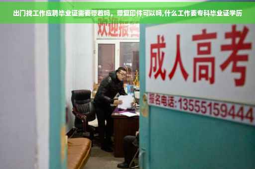 出门找工作应聘 毕业证当然要带 ,毕业证可以证明你的学历 ,现在很多单位招工 他都必须看你的原件 ,现在的年轻人 找份工作也不容易 ,各行各业都竞争的非常的激烈 ,现在每年的 大学 毕业生也是非常多的 ,这些孩子出来 都要去找工作 ,而工作岗位又是有限的 ,所以的正式 面对 应骋单位