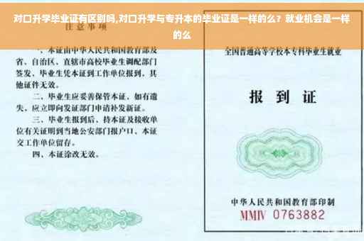 通过对口高考升入大学后毕业时的毕业证书与统考的毕业证书是一模一样的,对口升学是国家从高校招生方案中挑选部分专业进行招生,其毕业证书与普通高考毕业生的证书相同。