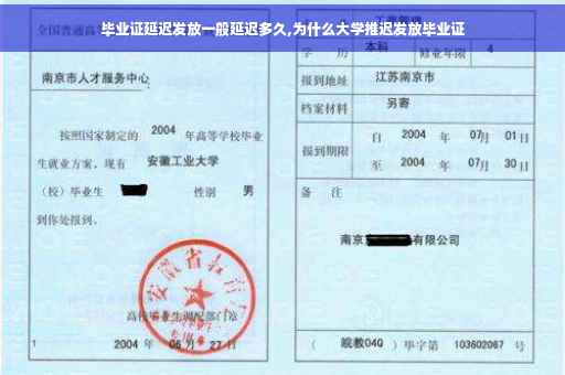 毕业证延迟发放的时间因地区和个人情况而异,一般来说是在4个月至半年左右。