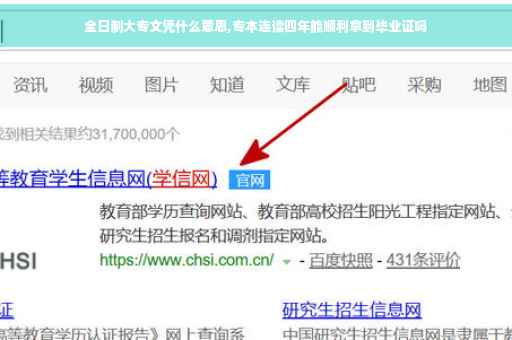 全日制大专(Full-time college)是一种全天候教学体制的大学。包括普通高校、民办院校(有统招资格)、军事院校、艺术院校、成人教育都包括在内。学生入学约两个月之后在高等教育网上能够查到学籍,如果不能查到学籍就不是普通高校全日制的学生。全日制大专能在中国高等教育学生信息网(学信网)上查到学籍信息,且在学习期间必须转档案,一般还需转户口关系等,其毕业证、学位证是国家教育部认可的。