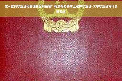 总之,成人教育毕业证和普通高校毕业证是有很大区别的。但也有很多相同点。如果手中只有高中或者中专学历。那么也是很有必要拿上成人教育学历的,起码来说不要让自己落后太多。