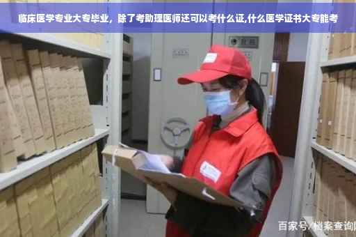 临床医学专业大专毕业,一般都是考助理医师证,然后做相关的工作后在考医师资格证; 据《中华人民共和国执业医师法》及有关规定具有下列条件之一的,可以参加医师资格考试: (一)具有高等学校医学专业本科以上学历,在执业医师指导下,在医疗、预防、保健机构中试用期满一年的; (二)取得执业助理医师执业证书后,具有高等学校医学专科学历,在医疗、预防、保健机构中工作满二年;具有中等专业学校医学专业学历,在医疗、预防、保健机构中工作满五年的。 (三)具有高等学校医学专科学历或者中等专业学校医学专业学历,在执业医师指导下,在医疗、预防、保健机构中试用期满一年的,可以参加执业助理医师资格考试。 以师承方式学习传统医学满三年或者经多年实践医术确有专长的,经县级以上人民政府卫生行政部门确定的传统医学专业组织或者医疗、预防、保健机构考核合格并推荐,可以参加执业医师资格或者执业助理医师资格考试。考试的内容和办法由国务院卫生行政部门另行制定。