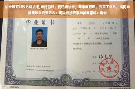 虽然学历证书上是没办法改变的,但是学信网会随着你更改姓名后,重新更新信息,可以通过学习网来证明你的学历。不可能改变,因为你的大学信息已经输入了国家大学生信息库,所以不会改变
