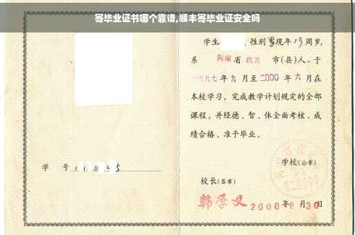 顺丰寄毕业证还是比较安全的,因为顺丰可以说是目前国内相对来说运送的速度和质量都非常有保证的,比较好的公司,虽然他的快递会会比其他的快递公司要贵一点,但他的质量有保证,而且顺丰的快递员相对来说更加的专业化也更加的有素养