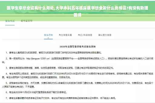 大学本科五年临床医学毕业发毕业证和学士学位证,不会发资格证的。资格证需要本科毕业一年后,在国家医学考试网报名参加全国统一的执业医师资格考试,考试通过后会发给医师资格证,在医疗机构注册后会有执业医师证。本科学历直接考执业医师,不用考助理。现在临床医学本科毕业后可以考研或者参加医师规范化培训,资格考试具体事宜可以咨询所在单位医政处。