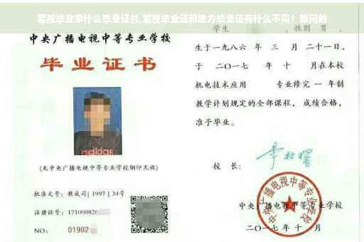 毕业证的区别在于是否在教育部登记、备案。 军校毕业证书要获得地方认可,需经国家教育部门进行认证、登记才行,你登陆一下学信网,有专门的认证门户。 而地方高校的毕业证书信息均在教育部有记录。