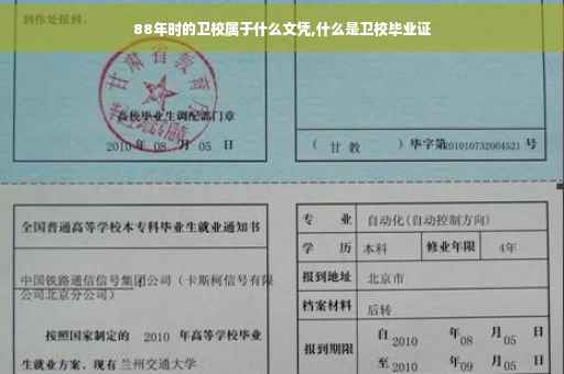我们国家1988年的卫校毕业生,其学历层次是中专,其毕业证属于中专文凭。当年,很多地方都建有中专层次的卫生学校,基本上达到每一个地级市(专区)都有一所的密度。卫校招收初中毕业生,经过三年的学习后,毕业时发给的毕业证书,属于中专学历,毕业生享受中专毕业生待遇。