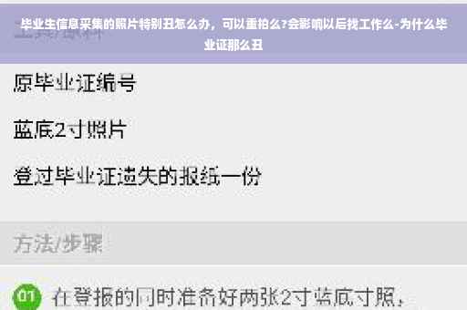 恩 照片丑丑的问题是很多人的烦恼 毕业生的信息采集所以的东西是要归档的 不可能单独拿出来重新拍的 不过放心 这些东西不会影响你的就业的 且不说咱们能力的问题了 就是应聘履历也是你自己准备的 所以 放心 不会影响什么的
