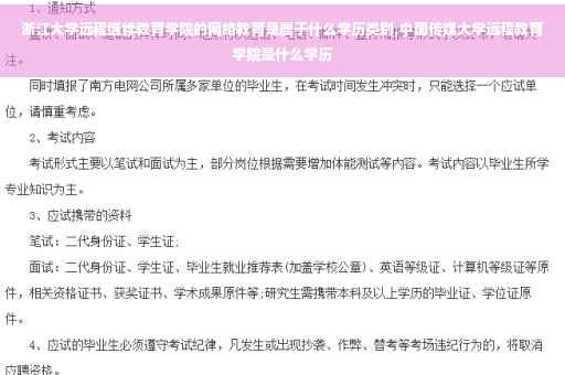 浙江大学远程继续教育学院的网络教育学历类别属于国民教育系列的网络教育学历。 浙江大学远程继续教育学院明确指出 在规定学习期限内达到本专业毕业当年毕业课程审核计划规定的最低毕业学分和各类学分要求,毕业鉴定和前置学历合格,并通过教育部组织的公共课基础水平考试(高起专学生不需参加),由浙江大学颁发国民教育系列的网络教育毕业证书,并报教育部电子注册,国家承认学历。