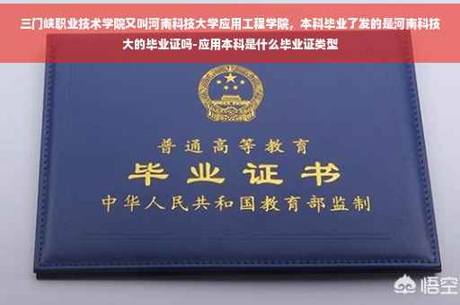 三门峡职业技术学院又叫河南科技大学应用工程学院,本科毕业了发的是河南科技大学的毕业证。 河南科技大学应用工程学院的学位证和毕业证均由河南科技大学统一颁发,河南科技大学应用工程学院由三门峡市政府和河南科技大学联办。