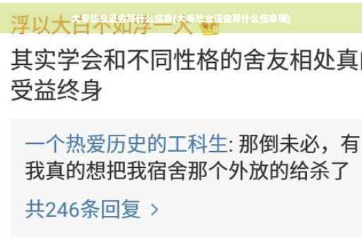 到此,以上就是小编对于大专毕业证会写什么信息的问题就介绍到这了,希望介绍关于大专毕业证会写什么信息的4点解答对大家有用。