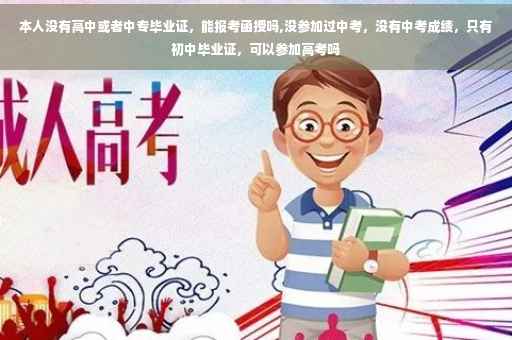 高中一般是通过中考录取的,没有中考成绩一般不能读高中,而与是否有初中毕业证没有关系。如果是职业高中就可以直接去读了,职业高中一样可以考大学,不过多数是职业学院。中考即“初中毕业和高中阶段招生考试”,是选拔考试,但又是建立在义务教育基础上的选拔;中考要考虑初中学生升入高中后继续学习的潜在能力,但高中教育还是基础教育的范畴。