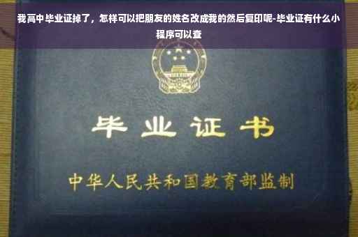 高中毕业证掉了,最好不要把朋友的姓名改成自己的, 高中毕业证书由省教育厅统一管理,省、市两级教育主管部门审查、验印,毕业证书一律于毕业当年颁发,不予补发。但教育局可以办理基础教育学校毕业证书遗失证明,具体程序如下:(1)本人到原毕业学校查核毕业证书存根或出具证明;(2)本人登报声明原证遗失作废;(3)本人持证明、报纸、照片等材料到市教育局基础教育科申报;(4)教育局核发遗失证明。 如果只是出国留学需要,到学校开具高中毕业证明及高中三年学习成绩后,再到公证处做个公证也就可以了。