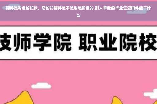 拿你的毕业证复印件可以到拿你的毕业证复印件可以到广告公司进行扫描之后通过PS软件将相应的信息进行更换,然后出一个彩色的相当于正式的毕业证扫描件发给某公司,进行一些非法的注册或者是一些非法的印章刻制甚至身份交替!