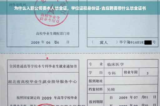 二、确定身份,确定本人和应聘资料对应。二、要建用工档案,以便后面社保、公安来查之用; 总之,没有身份证,不能办社保,也不能办劳动合同,也不能确认人员,企业要承担不必要的风险,而对于企业来说,任何的问题,都有可能带来风险,而身份证的出示,可以相对减少一些不必要的风险。要毕业证,学位证: 主要是证明你的求职资料上的毕业信息和学位信息是不是真的,确保招到的是合适专业人员。这样也杜绝了假信息的可能,求职资料和实际资料能相对应。企业真正招到了合适的人员,才能透露必要的企业信息,进行必要的上岗培训,减少不必要的浪费。本人的身份证件,公司有年龄要求的,不能超过48周岁,还有要准备两到三张一寸和两寸照片,毕业证复印件,大专的要在学习网上查到备案的,面试的时候会问你自己以前的工作经历,之类的,身份证最好复印两份,一份交给公司一份自己留着。就可以了。