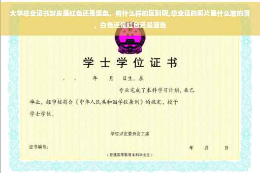 原来是红色的,从2005届起就改用蓝色了,并且和内心完全分离;毕业证内心也增强了防伪技术(主要是防止制假)。2000年以后的大学毕业证书都可以在中国高等学校学生信息网上查询真伪,封面和内芯完全分离,用什么颜色的封面对毕业证真假没有影响,关键是内芯,只要内芯是真的,在上述网站上查得到就行。封面都是中华人民共和国教育部监制的,并印有“中华人民共和国教育部监制”字样。