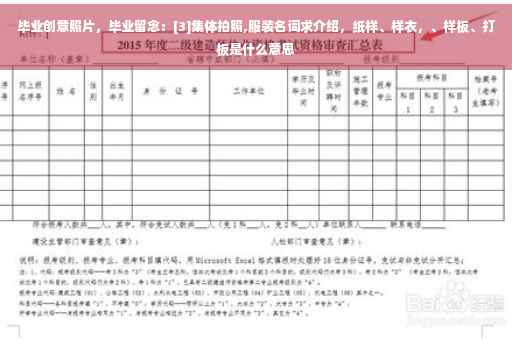 纸样一词是服装工业中专用的词语,是把立体服装平面化的一种很好的表现方法。服装纸样设计是服装结构上的设计,它虽然有别于服装造型的设计,但它是构成服装造型设计的基础。2、样衣: 服装的实际样品。分为两种: (1)企业自主设计试制的新款样品,供客户选样订购; (2)按客户要制作并经客户确认的样品,体现设计意图和原作精神的样衣是设计、制板和车缝密切配合、反复修改、不断完善的集体劳动成果。3、样板:起着模具、图样和型板的作用,是排料画样裁剪和产品缝制过程中的技术依据,也是检验产品规格质量的直接衡量标准。样板是以结构制图为基础制作出来的,称为打制样板,简称制板。4、打板:根据设计师的意图在纸样上将服装分解成衣片,绘制成结构图(纸样),包括身,袖,领等。纸样经过校验后放在面料上,按照纸样的轮廓裁剪成衣片,将衣片进行缝纫后做出成衣。拍毕业照,如果是大合影,1、光圈不能大,最好用小光圈,确保景深,使每个人都清晰;2、用标准镜头,避免边缘畸变。至于站位,灵活掌握,既可整齐成排,也可以不规则的松散场景,显示生活气息。