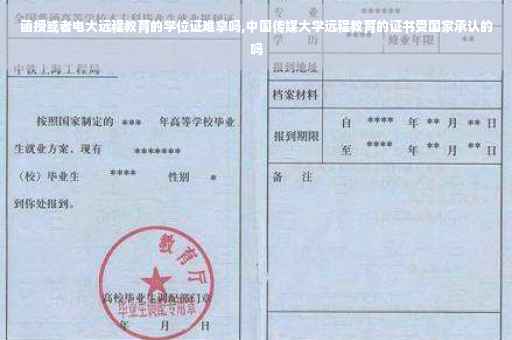 中国传媒大学远程教育的证书受国家承认。 国家承认学历:泛指符合国家政府机构和教育机关部门认可的并具备符合条件的大学专科或本科毕业证书(学历证明)。 具备条件基本如下: