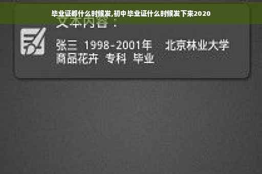 2020年初中毕业证多数是在中考结束后的第二到三周基本上多会也可以拿。毕业证一般都全部掌握在班主任手里,你也可以在下学期开学的时候找老师要,升学具体不知道要不要毕业证,你和班主任联系下就可以拿到的。