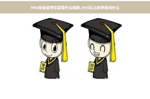 985以上的院校学历与其他普通院校没有区别,是某某大学毕业证、获取教育部统一颁发的学士、硕士、博士学位证书,区别就是所就读的大学的名称红印章、钢印章和校长签名。985是1985年教育部评选的中国最优秀的高等院校学科评审排名最高的直属大学,常是提前批或第一批录取的院校,高考分数是最高的,每年高考招生录取的新生人数是一所高中教学师资实力、社会知名度和影响力的体现。