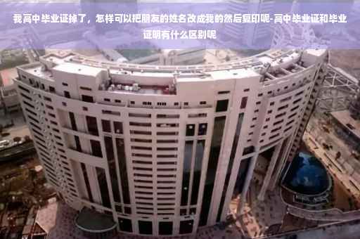 高中毕业证掉了,最好不要把朋友的姓名改成自己的, 高中毕业证书由省教育厅统一管理,省、市两级教育主管部门审查、验印,毕业证书一律于毕业当年颁发,不予补发。但教育局可以办理基础教育学校毕业证书遗失证明,具体程序如下:(1)本人到原毕业学校查核毕业证书存根或出具证明;(2)本人登报声明原证遗失作废;(3)本人持证明、报纸、照片等材料到市教育局基础教育科申报;(4)教育局核发遗失证明。 如果只是出国留学需要,到学校开具高中毕业证明及高中三年学习成绩后,再到公证处做个公证也就可以了。