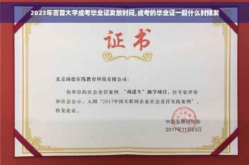 很抱歉,我不清楚吉首大学2023年成考毕业证的具体发放时间。通常情况下,成考毕业证的发放时间会在学校官网或学院通知中进行公布,建议您随时关注吉首大学的官方渠道或与学校联系以获取最新消息。