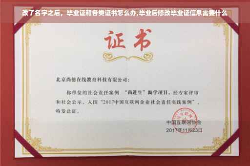 改了名字之后,毕业证和各类证书需要办理相关手续进行更新。