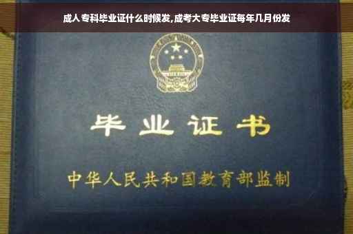 成人高考在每年的6月份左右颁发毕业证 。成人高考每年只有一次领取学历证书的机会。成人高考的学制是两年半,如果我们想要顺利获取文凭的话就要完成两年半学制的学习,这样才能想着最终获取文凭的事情。希望大家好好的珍惜领取学历证书的时间,在领取文凭时我们也不用到学校去,直接到函授站即可。