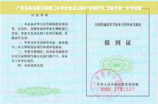 广西玉林市陆川县第二中学毕业证上照片有钢印