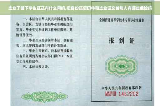 因此,为了避免以上危险,应尽可能避免将身份证复印件和毕业证交给他人,特别是陌生人或不可信任的人。如果必须提供这些信息,请确保对方是可信的,同时建议对敏感信息进行遮盖或删除。