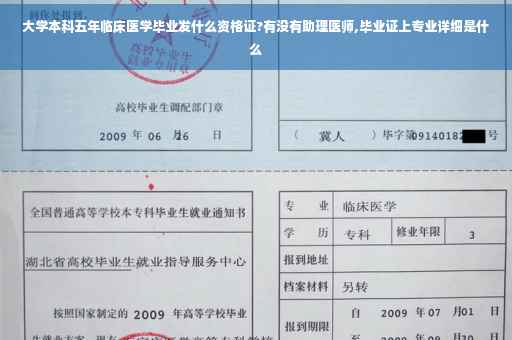 大学本科五年临床医学毕业发毕业证和学士学位证,不会发资格证的。资格证需要本科毕业一年后,在国家医学考试网报名参加全国统一的执业医师资格考试,考试通过后会发给医师资格证,在医疗机构注册后会有执业医师证。本科学历直接考执业医师,不用考助理。现在临床医学本科毕业后可以考研或者参加医师规范化培训,资格考试具体事宜可以咨询所在单位医政处。