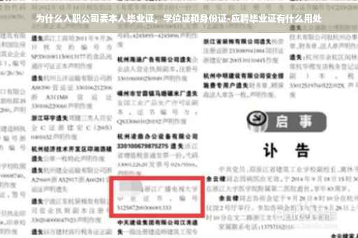 二、确定身份,确定本人和应聘资料对应。二、要建用工档案,以便后面社保、公安来查之用; 总之,没有身份证,不能办社保,也不能办劳动合同,也不能确认人员,企业要承担不必要的风险,而对于企业来说,任何的问题,都有可能带来风险,而身份证的出示,可以相对减少一些不必要的风险。要毕业证,学位证: 主要是证明你的求职资料上的毕业信息和学位信息是不是真的,确保招到的是合适专业人员。这样也杜绝了假信息的可能,求职资料和实际资料能相对应。企业真正招到了合适的人员,才能透露必要的企业信息,进行必要的上岗培训,减少不必要的浪费。把身份证复印件和毕业证交给别人可能会导致身份信息被泄露和被利用,例如用于非法操作、诈骗、假冒等行为。此外,如果对方不善意使用这些信息,可能会造成个人信用记录的损失。因此,建议保护好个人身份证和毕业证的信息,不要随意交给他人。
