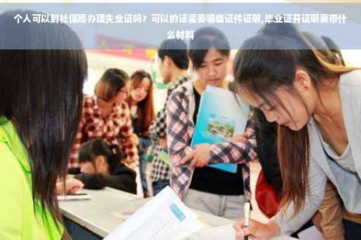 个人可以到社保局办理失业证的,如果劳动者是被用人单位辞退或者是劳动者被迫辞职的,劳动者可以携带本人身份证,银行卡,失业证明到劳动部门进行办理。 失业证办理程序如下: 凡领取失业证的人员,必须持本人户口簿和小一寸免冠近照两张到你所在的街道办事处办理。所需证明材料包括: (一)未能升学的高中毕业生和初中毕业生,凭毕业证书。 (二)职业高中毕业生和自费走读的大、中专技校毕业生凭毕业证书和社区居委会证明。 (三)中途退学学生,凭学校出具的退学证明。 (四)被开除、除名、辞退或自动离职的职工、合同期满的职工,凭原单位出具的解除合同证明。 (五)按政策规定迁入的居民(不包括已落实安置的征地农民),凭原申报其入户的单位出具的证明。 (六)个体工商户、私营企业歇业人员凭工商部门发给的证明。 (七)大、中专、技校毕业生、凭学校出具的证明。 (八)解除劳教和刑满释放人员,凭司法(公安)部门证明。 (九)新毕业的毕业生,凭参加劳动就业培训考试合格的结业证书。 (十)以上证明需所在区劳动局加意见、盖章。