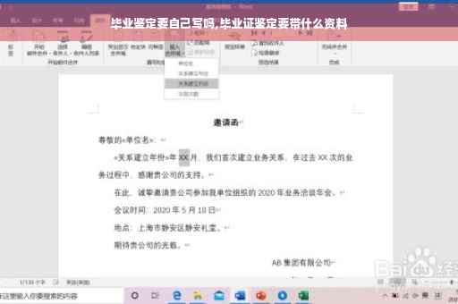 毕业鉴定需要自己写。毕业鉴定是毕业生登记表中非常重要的内容,主要是对应届毕业生大学四年的表现进行评价,其中毕业鉴定分为自我鉴定、班级鉴定和学院鉴定。其中自我鉴定需要自己写,而班级和学院鉴定则有班委成员进行填写和确认。