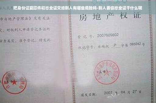 把身份证复印件和毕业证交给别人存在危害。