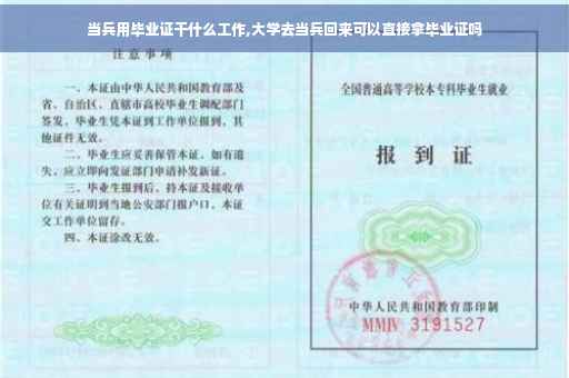 在校大学生去当兵后还可以拿到大学毕业证。大学期间当兵以后拿毕业证。一般来说,都得是退役后回到原学校继续完成学业,才能毕业 如果是大学最后一年只剩实习,去当兵,经学校认可,可以在服役期间与同届同学同步拿到毕业证。毕业证书: 毕业证书是做为学生毕业的凭证。学满学制规定的年限,完成教学计划规定的全部课程,各科成绩合格者的毕业证上有由全国统一的高等教育毕业证封皮页,获得毕业证书。毕业证书基本内容为姓名,性别,出生日期,毕业时间,学制,毕业专业,发证时间,电子注册号,学校校章,学校钢印,校长印等。
