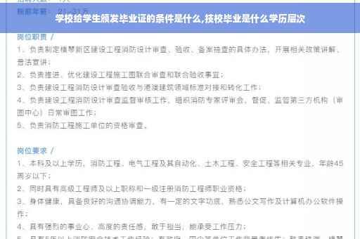技工学校简称“技校”。技工学校与中等专业学校(中专),职业高中(职高)一样,等同于高中层次学历。技校属于国家人力资源和社会保障部主管,招生层次包括初中毕业生、高中毕业生、社会再就业人员三部分。技工学校旨在培养各类技术技能人才,值得一提中技属于中等教育,而高技一般等同于大专。技工学校毕业颁人力资源和社会保障局(厅)印制的技工学校毕业证书和初级,中级或以上职业资格证书。技工学校开设的专业学制一般分:一年制、两年制、三年制、四年制、五年制等。技工学校培养人才更注重专业技能的提高,培养的一般为实用型人才。这只是一个编号,是用来辨别查询毕业证的真假的高中毕业证上的学籍号是教育局统一编制的,第一位表示毕业届数,第二、三位表示地、州、市代码,第四位表示各县、特区、区代码,第五、六位为学校代码,最后四位为学生序号。