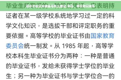 就目前毕业证号查询比较普及的是能查询到在校大学生和和已毕业大学生的学籍情况及对应编号,如果您须知道初中毕业证的编号,在您就读初中的相应教育局应该可以查询到。