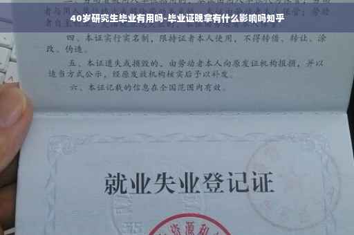 一个人想要学习,什么时候都不晚,一个人即使拿到了毕业证也什么时候都不晚,40岁还正是年富力强的时候,也还正是年轻的时候,刚刚走进中年的门槛,能够拿到研究生毕业证也是很了不起的。有了研究生毕业之后,也会有了更多的选择面在原来的工作岗位上,又会做得更好。