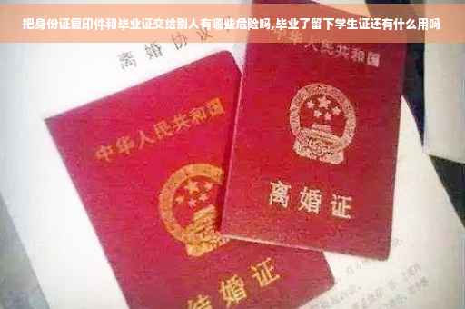 身份证复印件和毕业证复印件给别人,不安全,最好不要借给别人使用,如果请他人代自己办事也要托付给信任的人,身份证复印件要保管好,不用的或者作废的,要处理好,不能随意丢弃