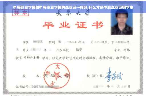 中等职业学校和中等专业学校的毕业证一样。因为中等职业学校和中等专业学校都是属于我国普通全日制中等职业教育技术高中,都是教导学生重点学习自己专业的专业技能技术,毕业证都是跟高中是一个级别,都是可以参加技能高考升学进入全日制统招大专