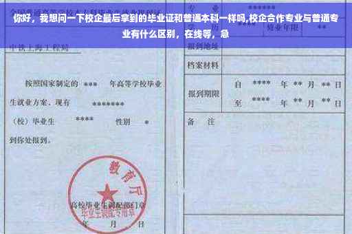 对于校企合作的本科生,与同一院校的同一专业的普通本科生同学的毕业证书是一样的。