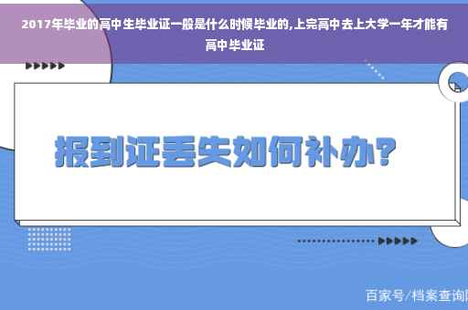 2017年的高中毕业证一般是高考前发,也就是2017年6月初高中毕业。这种安排主要是我们国家的普通高考衔接,国家普通高考一般安排在每年六月份的7、8、9三天,高中学校一般都会在学生高考前夕,安排学生毕业离校,去参加高考。也就是高考前高中学生就毕业了。