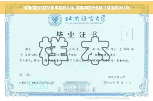 认可。学生修业期满、成绩合格,颁发由教育部统一电子注册的信阳学院毕业证书,享受普通高校毕业生待遇;按照国家有关规定对符合条件的学生颁发信阳学院学士学位证书。