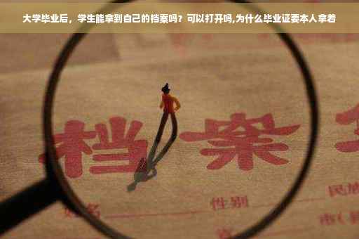 答:在大学毕业后,毕业生一般情况下不能拿到自己的档案,更不能打开了。高校毕业生档案管理,可通过县以上党委组织部门和政府人事部门所属机构进行保管。人事档案在个人手中保存或在无档案管理权单位保存的,应凭就业报到证先到当地政府人事部门所属人才服务机构补办有关手续,完善档案材料,然后再将档案移交到人才市场,及时办理人事代理和档案托管相关证明。
