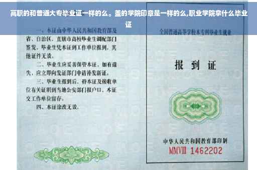 不一样,高职高专与大专毕业证是不一样的。高等职业学院和高等专科学校都是我国高等教育层次上的教育机构,同属于大专。大专是高等教育最低的一个档次。高职高专的学校形式主