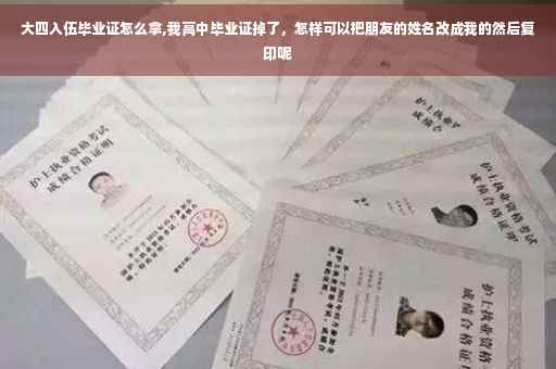 高中毕业证掉了,最好不要把朋友的姓名改成自己的, 高中毕业证书由省教育厅统一管理,省、市两级教育主管部门审查、验印,毕业证书一律于毕业当年颁发,不予补发。但教育局可以办理基础教育学校毕业证书遗失证明,具体程序如下:(1)本人到原毕业学校查核毕业证书存根或出具证明;(2)本人登报声明原证遗失作废;(3)本人持证明、报纸、照片等材料到市教育局基础教育科申报;(4)教育局核发遗失证明。 如果只是出国留学需要,到学校开具高中毕业证明及高中三年学习成绩后,再到公证处做个公证也就可以了。