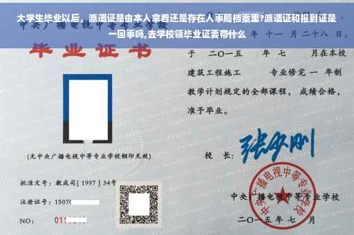 大学毕业以后,离开学校进入社会就业,所在学校会给学生一张派遣证。这张派遣证是由学生本人保存的。这张派遣证是证明你毕业了,可以去社会就业。派遣证和报到证不是一回事。报到证是学生持派遣证到人事部门,由人事部门分配你去单位上班的凭据。