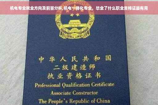 机电一体化属于工程类专业。没毕业或刚毕业不久可以考一些计算机类等级证书。毕业工作年限到了,可以考注册电气工程师证、注册一级建造师、注册二级建造师证、注册造价工程师等国家执业资格证书。