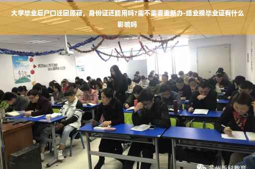 由于毕业户口迁移到原户籍,若跨市区甚至省份迁移,就需要重新办理新的身份证。 由于各市区甚至各省份的制度不同,因此若公民办理户口迁移跨市区以上户口迁移的,都是要求重新办理新的身份证使用;若公民原户籍和现户籍同一市区内的,那么原身份证可以继续使用,有效期满了才需要换证。 《中华人民共和国居民身份证法》 第十条申请领取居民身份证,应当填写《居民身份证申领登记表》,交验居民户口簿。 第十一条国家决定换发新一代居民身份证、居民身份证有效期满、公民姓名变更或者证件严重损坏不能辨认的,公民应当换领新证;居民身份证登记项目出现错误的,公安机关应当及时更正,换发新证;领取新证时,必须交回原证。居民身份证丢失的,应当申请补领。